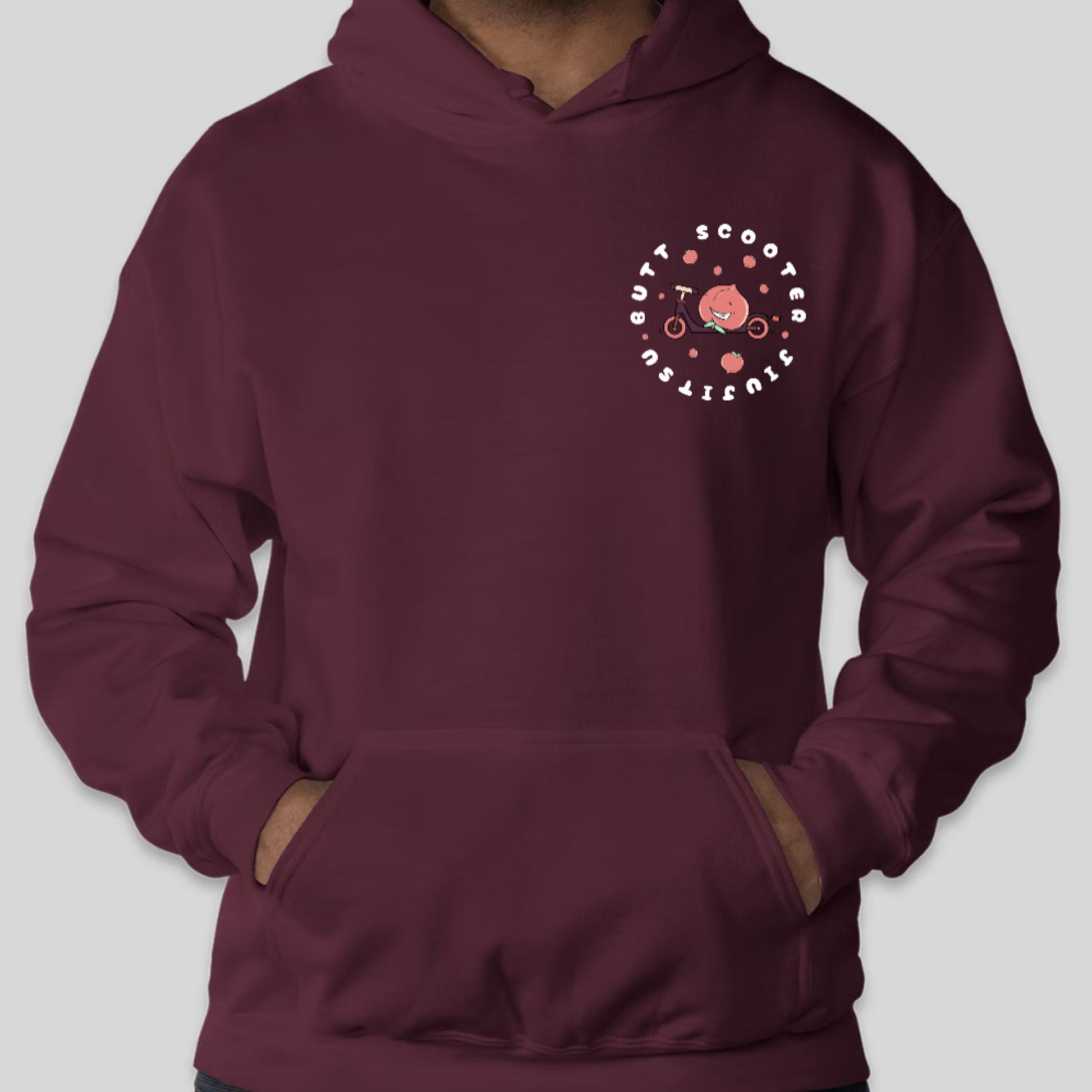 Our trademark 100% cotton hoodie. Embroidered front and printed back. Sized in normal menswear categories.